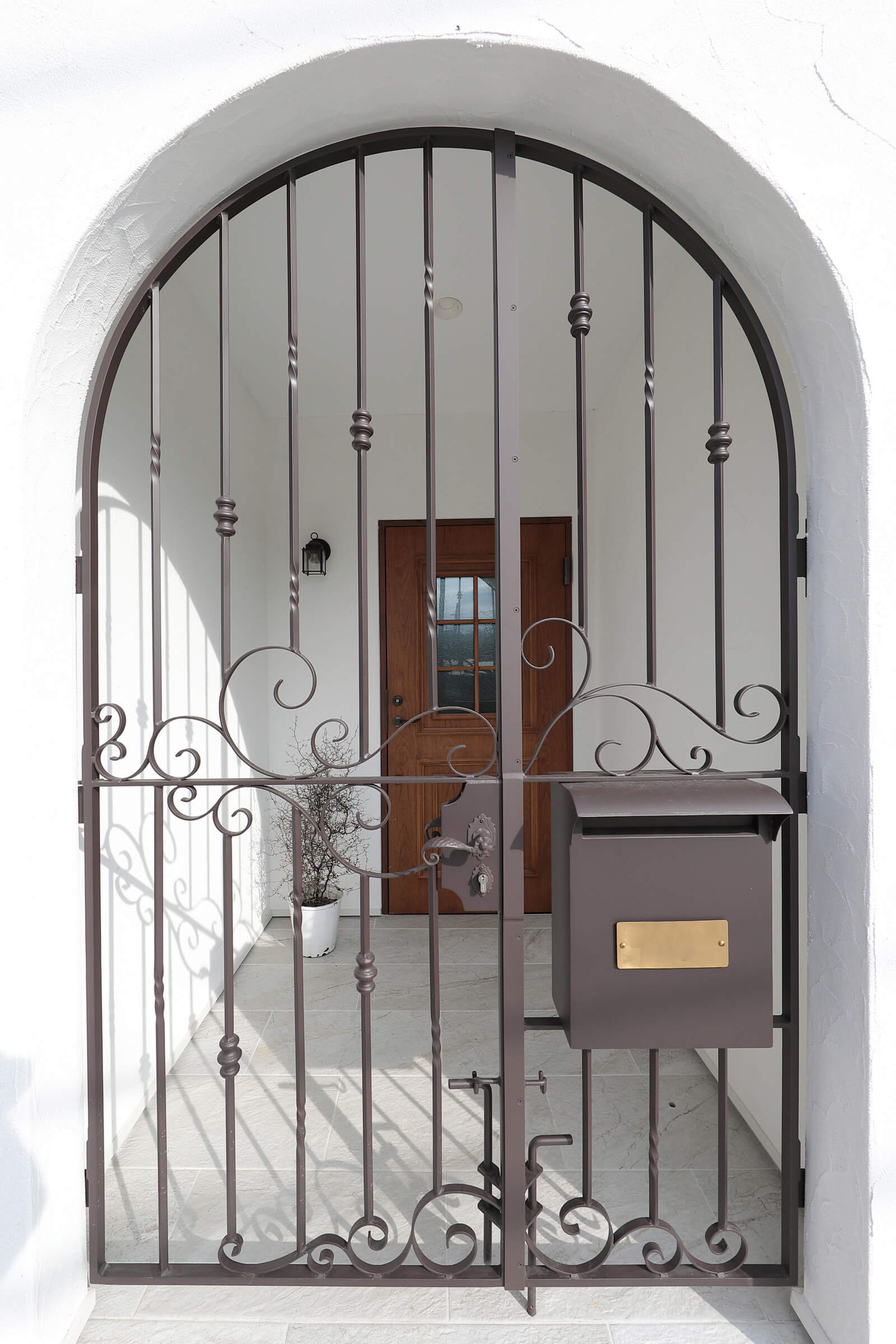 三角屋根の重なりが可愛い平屋の家 藤岡A様邸 特注アイアン門扉やリビングルームから繋がる小さいテラスが可愛い外観の平屋の家。部屋の中心に位置する吹き抜けのリビングダイニングや、白いオーダーキッチンなど、施主の要望を余すことなく取り入れた建物となっている。